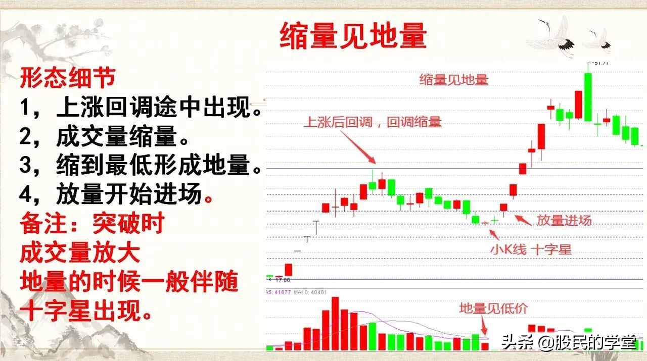 成交量,如果你连“缩量见地量”这种特殊的量能组合都看不懂,那么要找到低吸的市场机会比较难,特别是在上涨回调当中,底部出现“地量的”形态,下面分享“缩量见地量”战法,建议收藏转发!