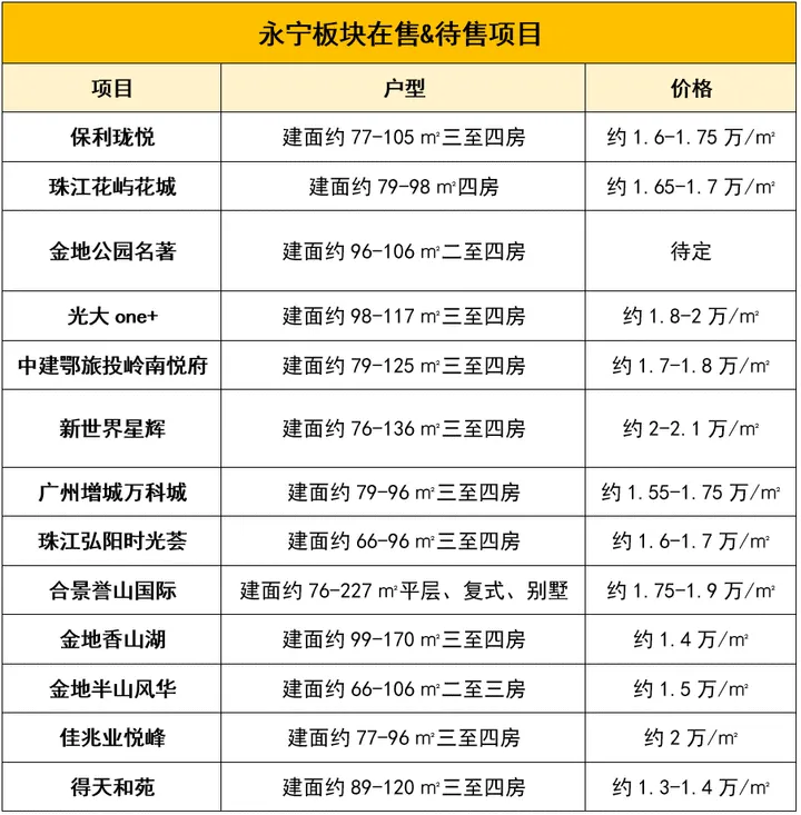 板块在售方面,竞争也很是激烈,永宁板块是广州各板块中内卷比较严重的板块之一,广为人知的神户型项目珠江·花屿花城就位于板块内,主打建面约79-96㎡3+1房,全员带主套的四房!