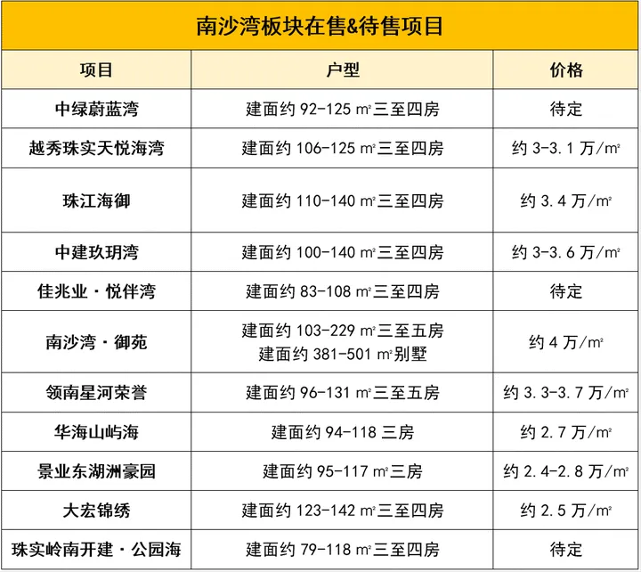 整个板块内,当前新房项目比较丰富,虽然是富人区,也有项目2字头在售,价格堪比区域内尚有大片土地待建的万顷沙的一些项目,不过板块整体的均价还是在3.5万/㎡左右,最贵的主打改善产品的南沙湾·御苑均价约4万/㎡。