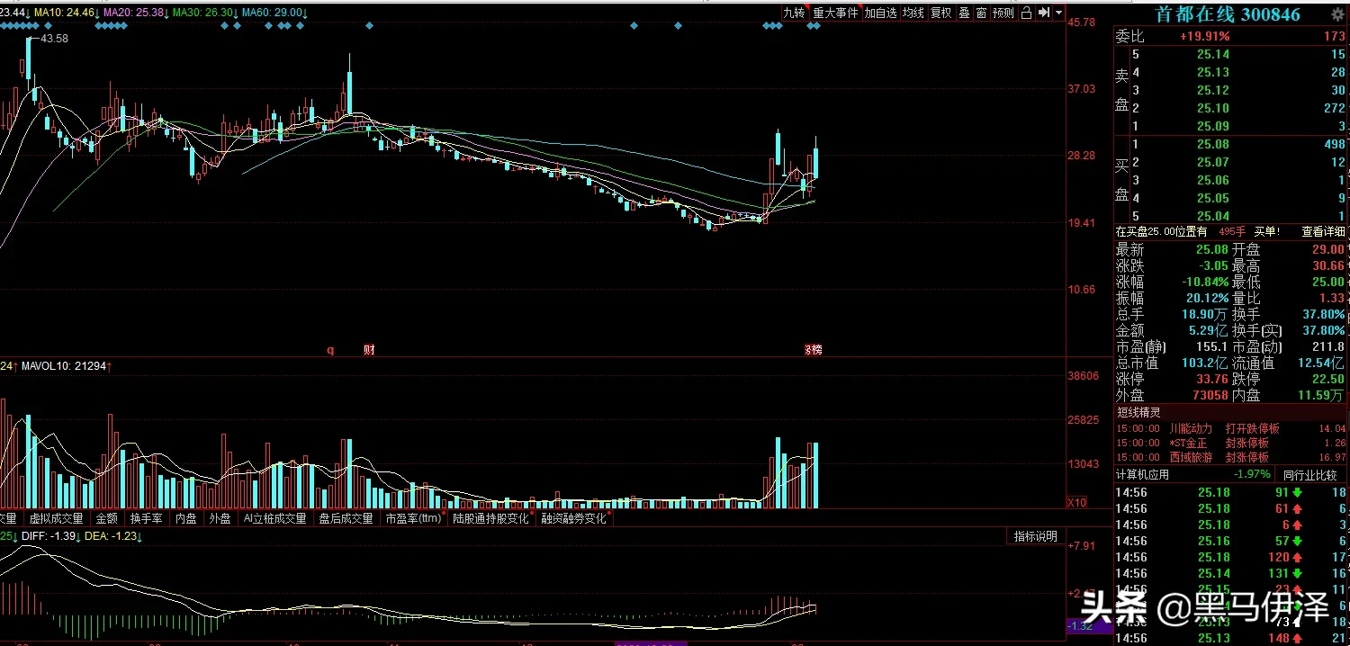 首都在线300846 近期连续出现三个涨停板,底部资金持续放大,短期要是没跌破22.30的均线支撑,预计会再次上涨。
