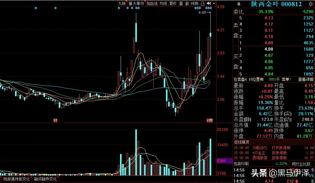 陕西金叶000812 1月下旬以来,连续4次出现过涨停,底部成交量更是巨量,在目前流动性枯竭下小盘股还出现这样的量能,后面必定有妖。