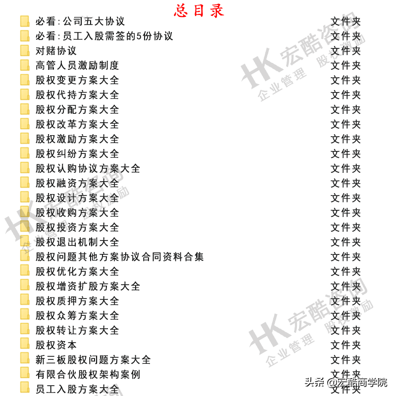 4、还有股权代持、激励、分配、投资、转让、众筹等方案大全。