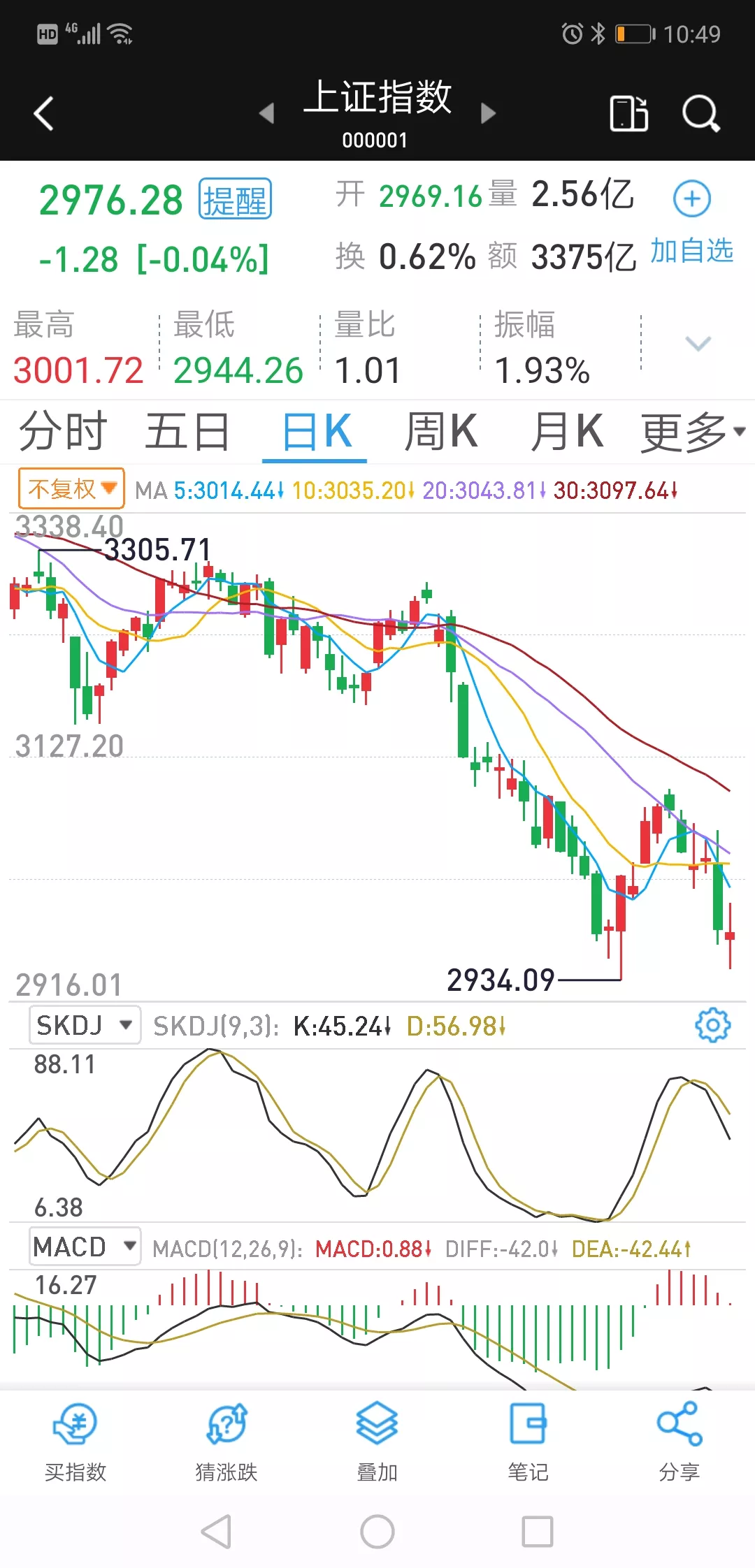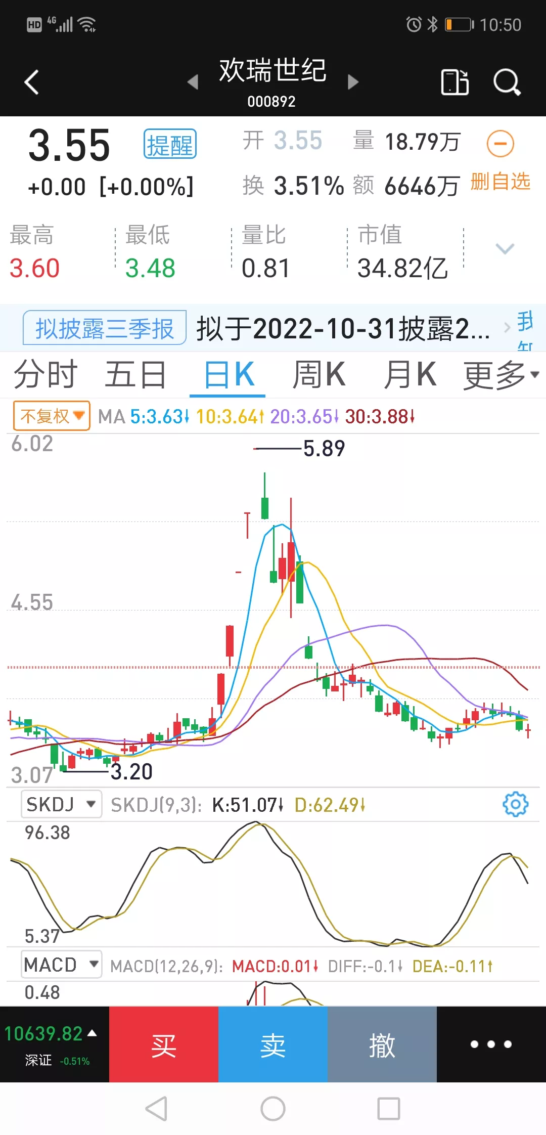2.到4.72购入900股。(一3.33%)到4.89出售900股。现在800股