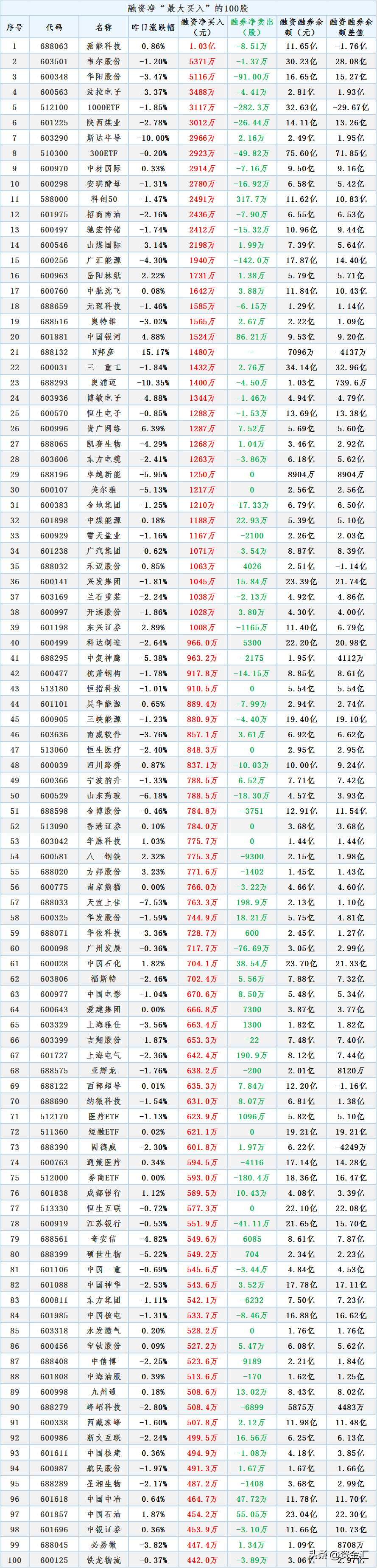 个股融资融券数据,融资净“最大买入”100股,名单出炉