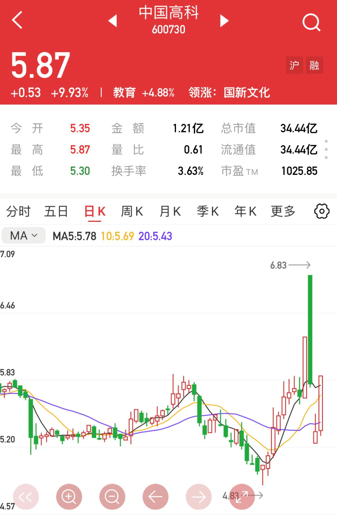 今日股价触及涨停,交投活跃度大幅提升,后市或仍有冲高动能。
