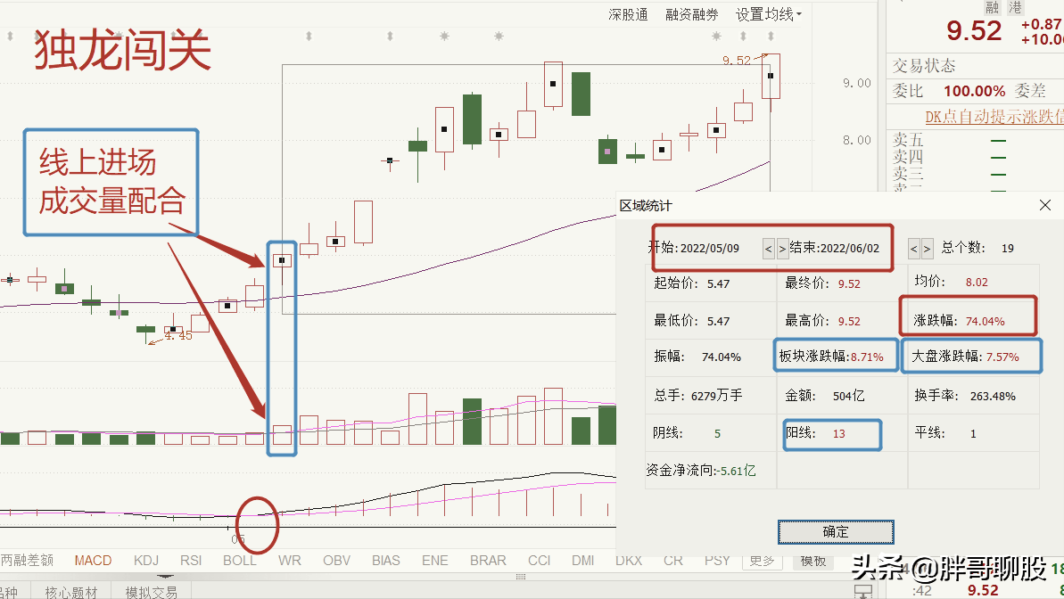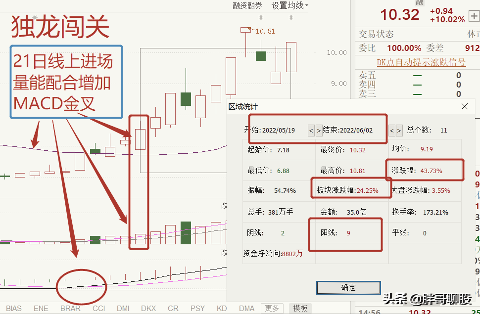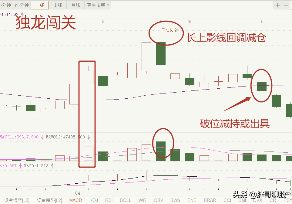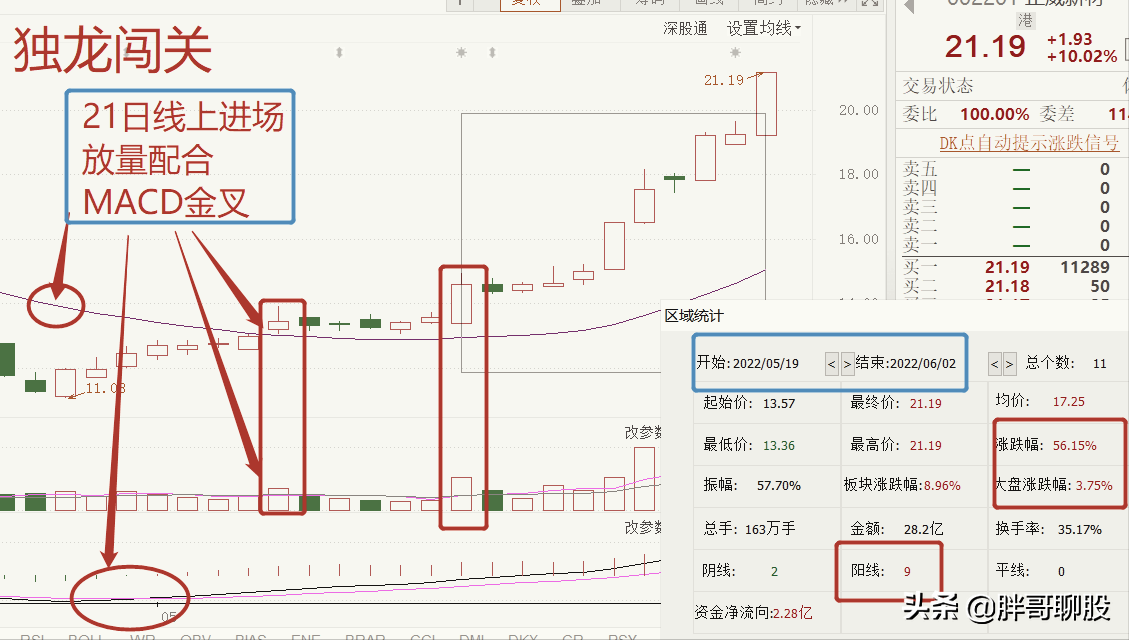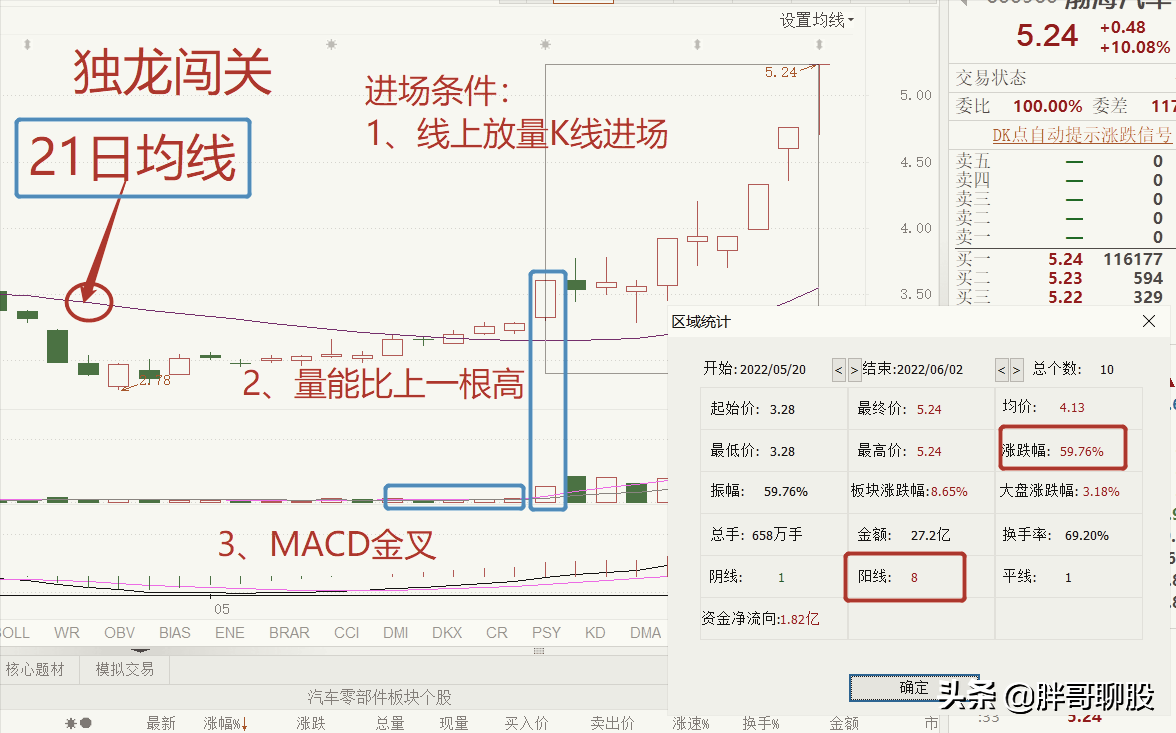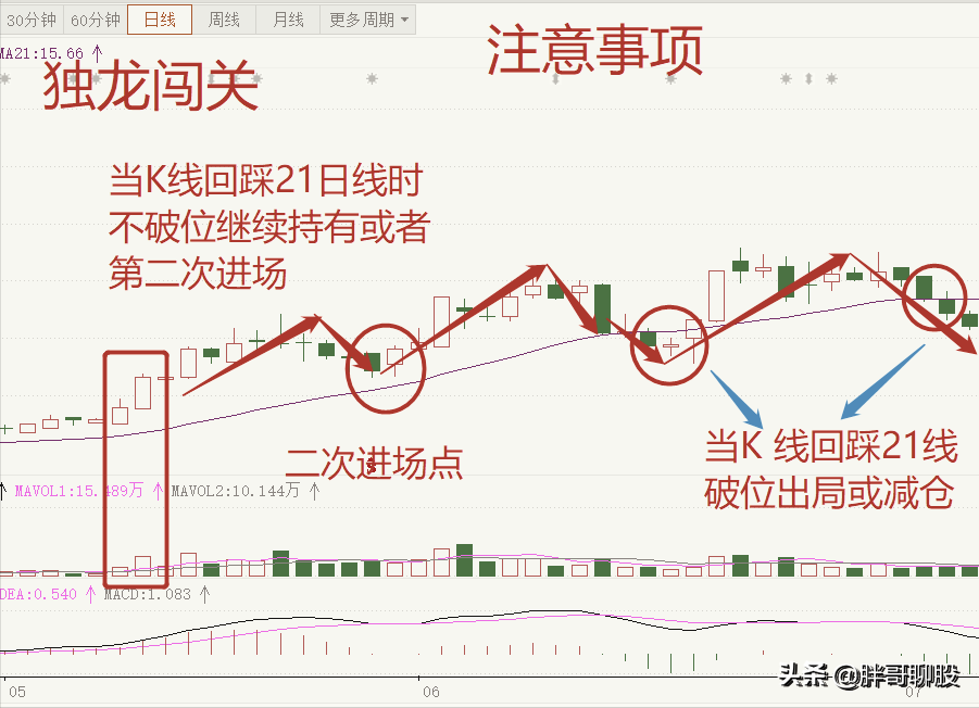 2、这个战法也叫独龙闯关,使用的时候一定要配合成交量+MACD一起使用;