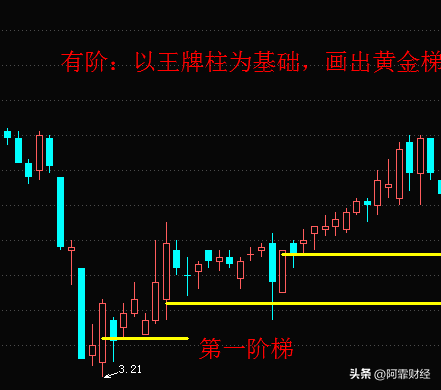 有阶是指个股的上涨像阶梯一样的一步一步地抬高的,体现出的是主力步步为营的一个风格。每次回调到一定的位置就能企稳再向上,而这个支撑住的位置就形成一个阶梯,为股价后面的上升奠定基础。阶梯基本上都是围绕王牌柱的黄金线形成的,也是主力的攻守位,找到这个位置,就相当于找到了主力的底线。