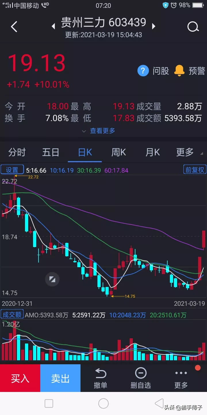 能够提前一天预判到涨停的概率:0%是大多数,20%是少数人,达到50%是不可能的,上个星期四涨停股掘金的是5只股,星期五居然涨停了4只,概率达到80%,这么神奇的事情说明了这篇文章被庄家盯上了,见谁逮谁,开盘就猛怂[大笑],只有一个资金不够,也点低开高走。今天文章最后再来一次涨价股掘金,看庄家看不看得见?
