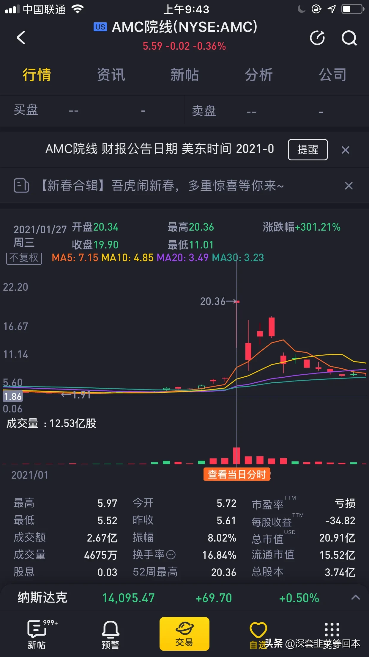美股AMC院线散户抱团拉高股价,高位减持套现帮忙电影院渡过未来几年经营难关,也是割了一部分韭菜,A股毕竟有涨停板,万达电影股价不能像美股AMC院线一天拉高300%,只能靠业绩扭亏为盈来自救带动股价慢慢上涨了,割影迷的韭菜也是有点不讲武德了,可惜别人对影视传媒板块也是嫌贫爱富的,亏损的企业那是碰都不碰,再低的股价也是抛抛抛,股价再高的赚钱企业也是追追追。