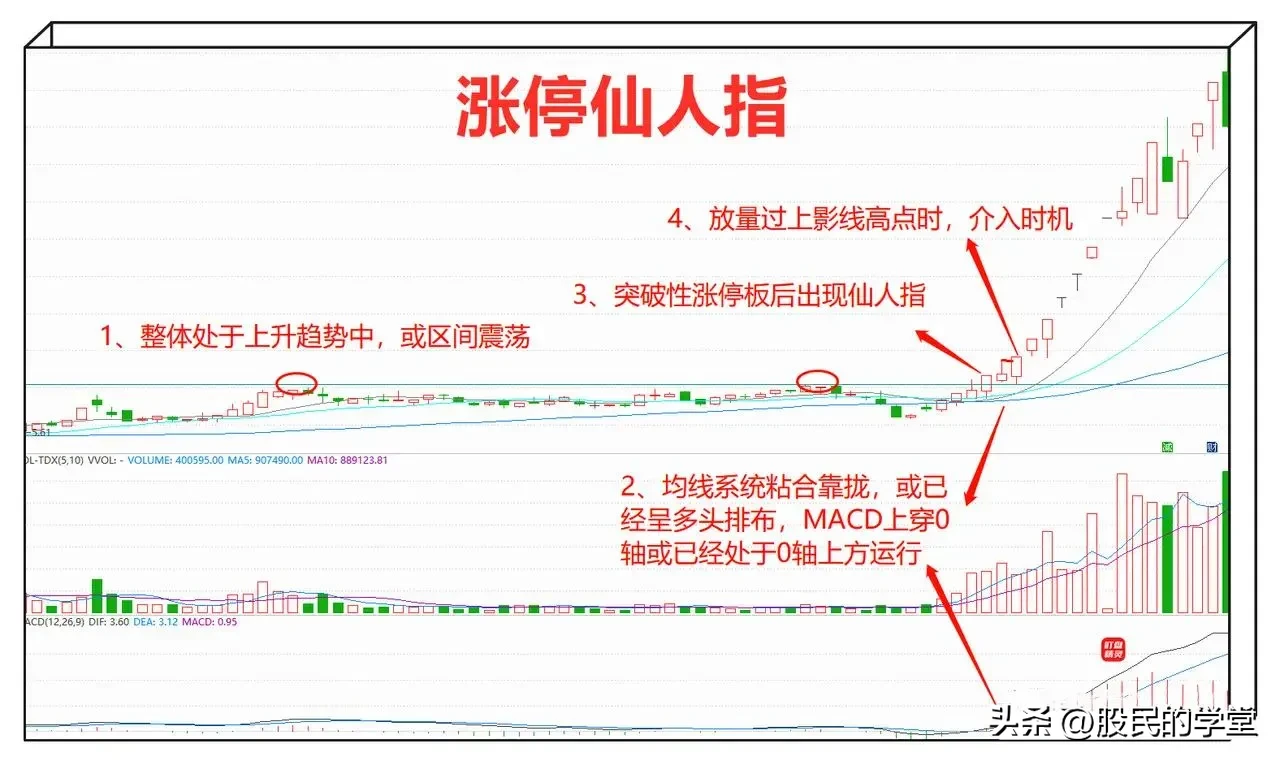 股价在低位涨停后没有延续上攻,而是随后出现冲高回落,报收上影线的形态,这就是涨停仙人指路形态,下面分享这个战法给大家,建议收藏转发!