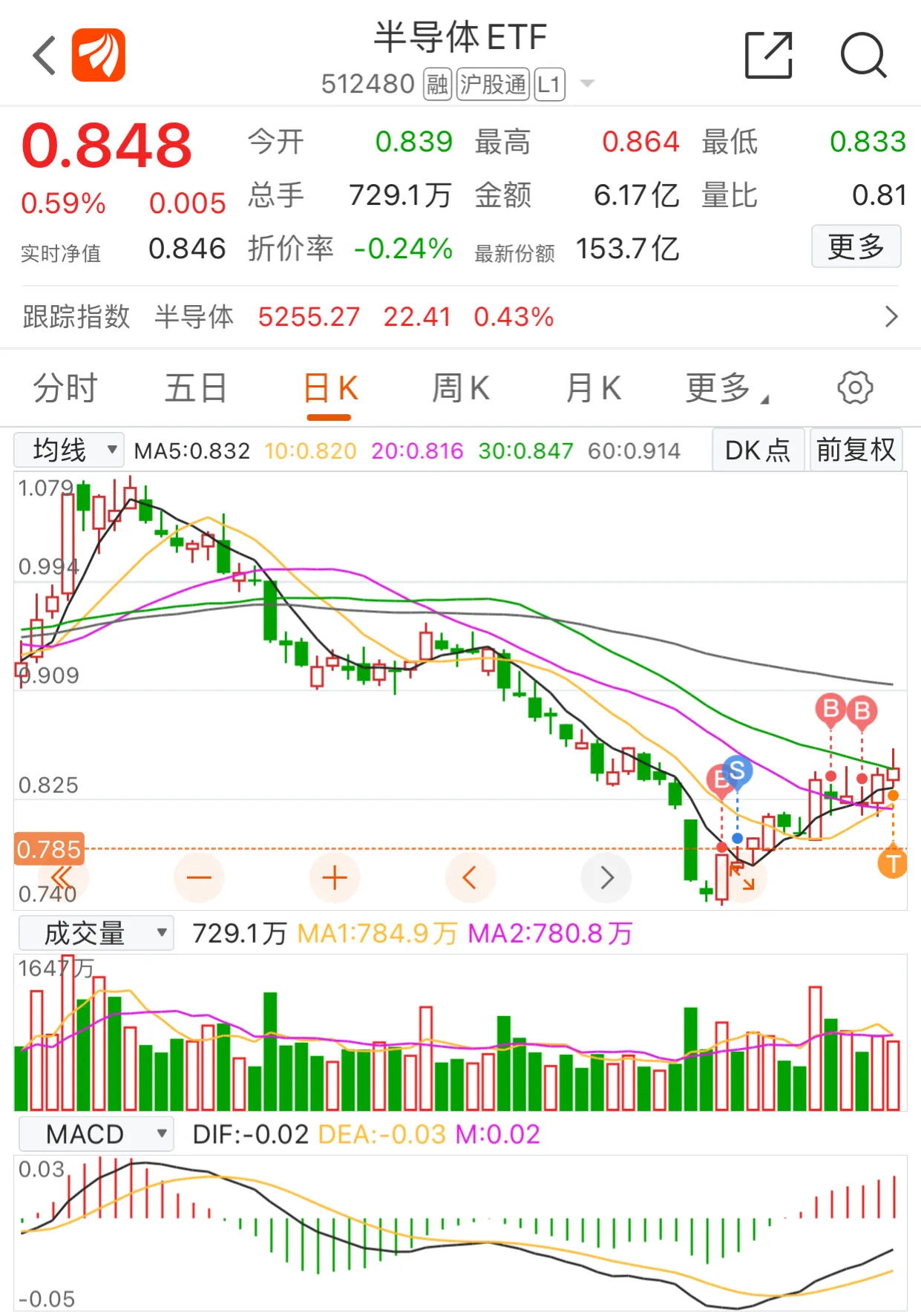 半导体ETF:昨天晚上蔡经理分析了半导体的行情,黎明前的黑暗,继续等待,等待消费电子发力,等待国产替代发力,等待之前在缺芯的行情,大量企业库存了大量的高价芯片,等待去库存结束。今天做了一个T,涨起来全卖了,跌起来又进了一部分底仓