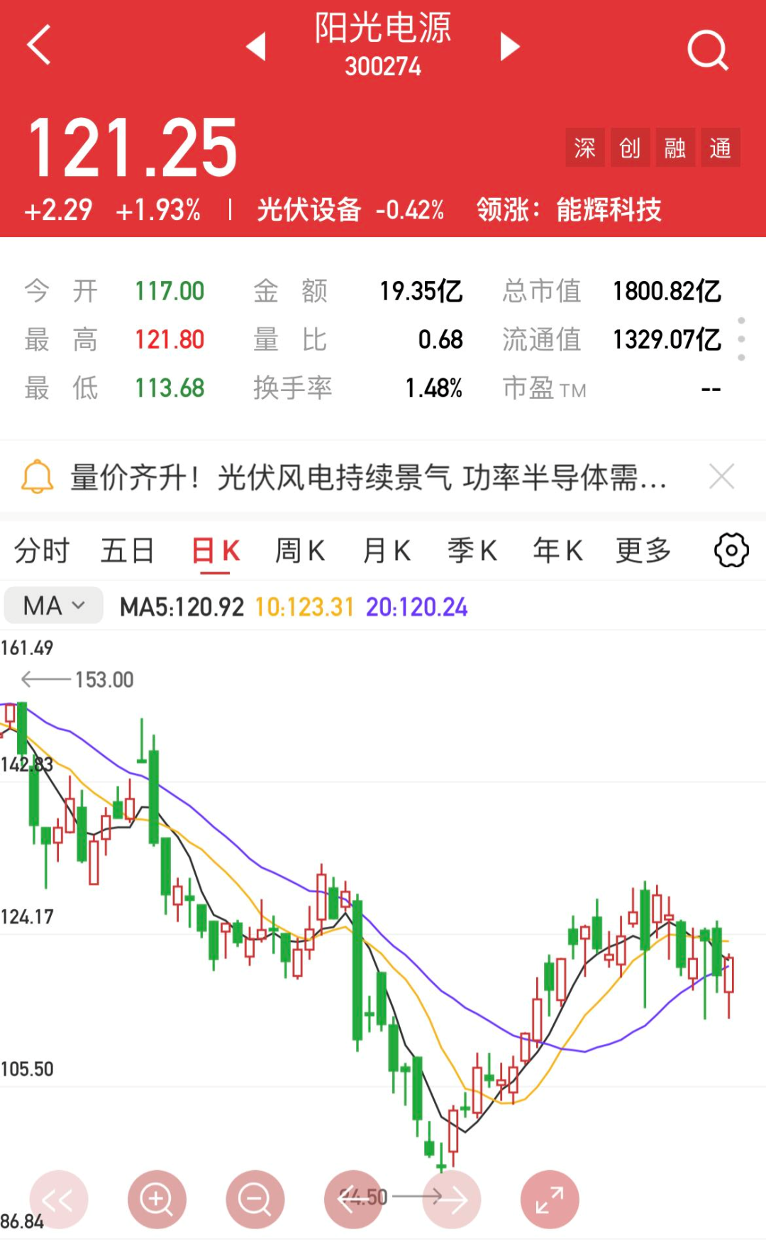 阳光电源前些天多次跟踪,往后短线也整体向好,当下回踩到支撑,或又到了新一轮潜伏反弹的时候。