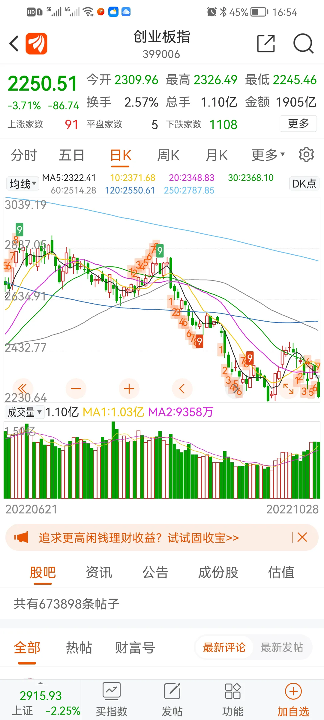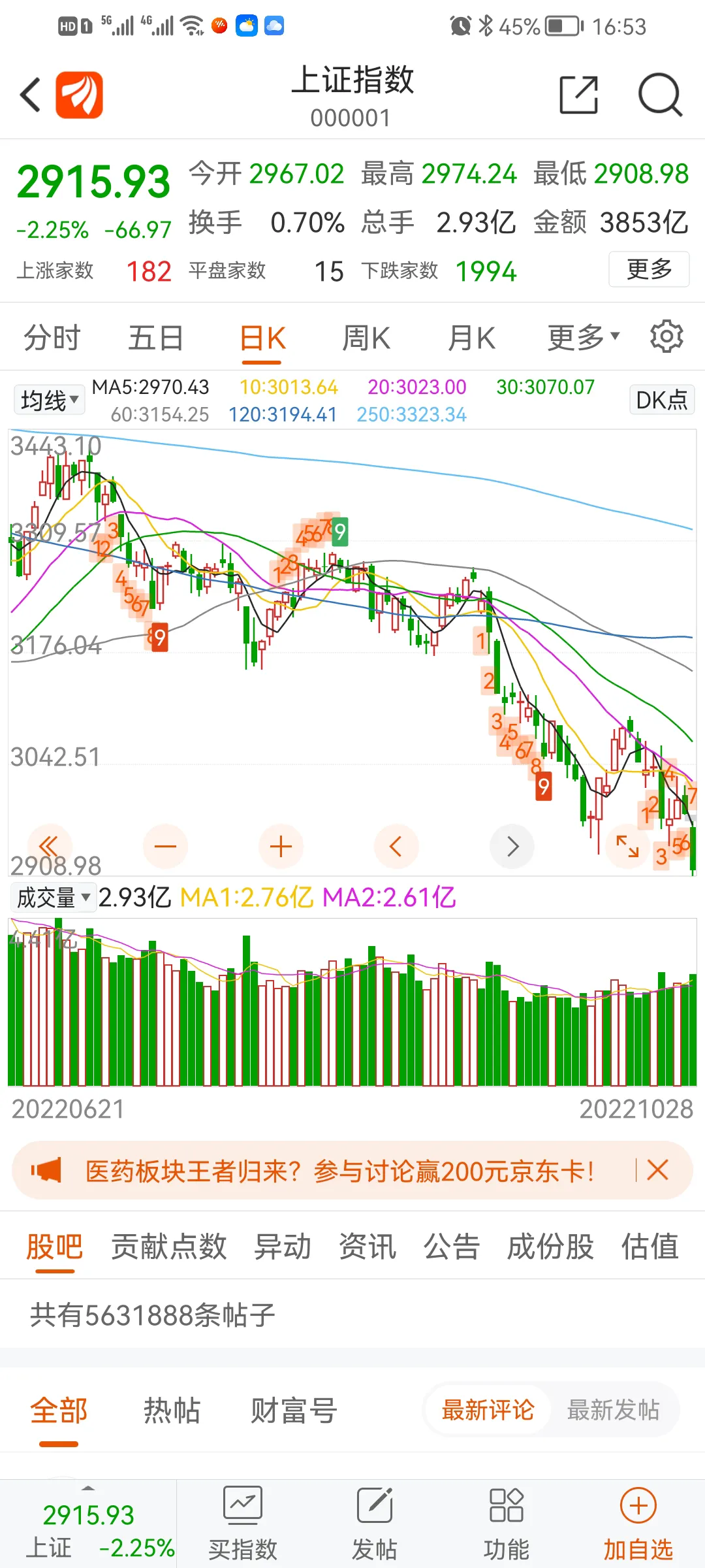 2022年10月30日,星期日,今日沪深股市继续周末休市,昨日对本周大盘走势和实盘操作进行了总结,今日将对下周大盘走势提前做一个预判,并根据这个预判对实盘操作提供参考。由于本周五收盘上证综指已经跌穿前期低点2934收盘创新低2915,下周一是本月最后一个交易日,也是三季报业绩披露的截止日,根据目前周末披露的财报来看基本上三季报业绩雷会在下周一这一个交易日集中释放,尽管从外盘来看周五晚间美国股市道琼斯指数和纳斯达克指数收盘都大涨2%以上,但是A股有自己的运行趋势,最近完全跟外盘免疫,显然还是A股自身出现了大问题,那就是三季报业绩增速减缓超预期。