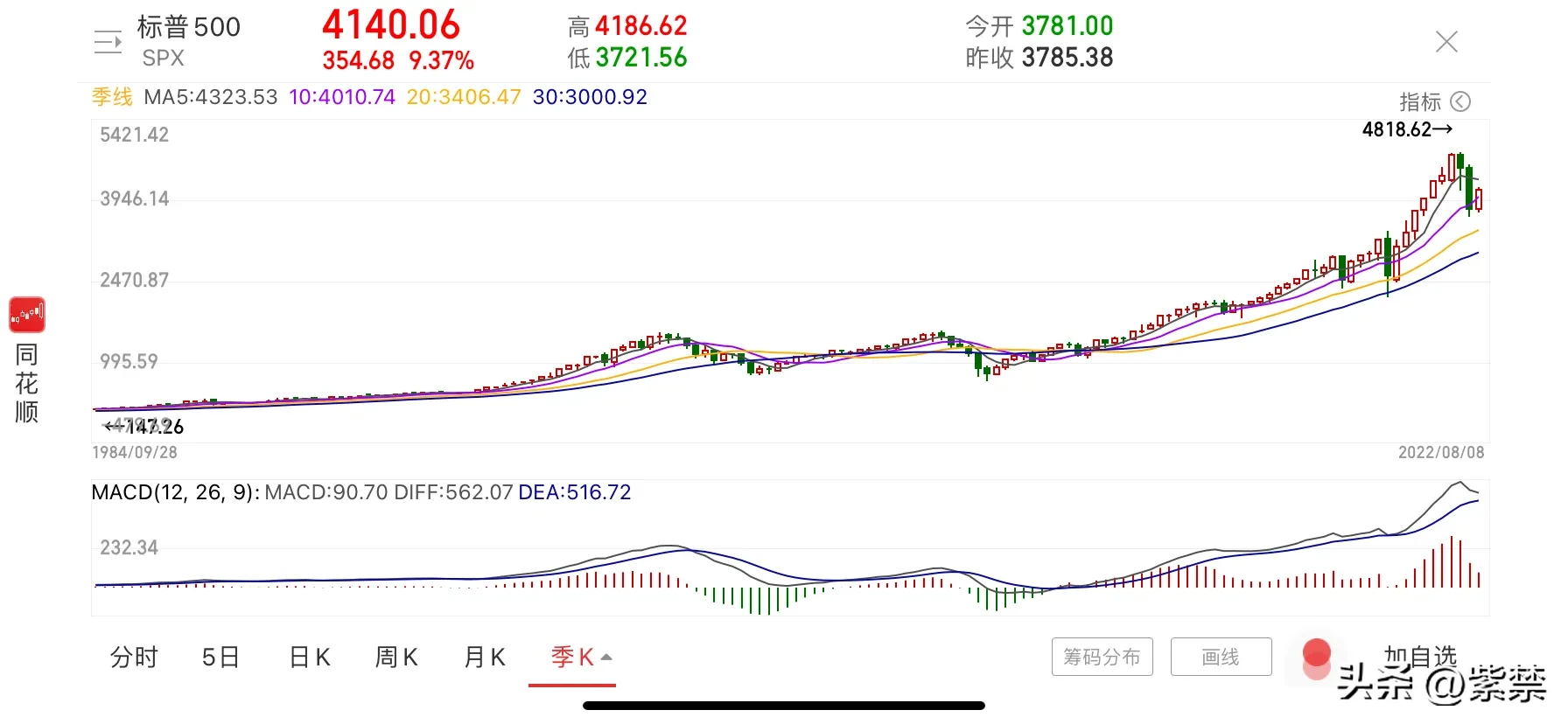 所以对于这个美国资本市场系统性的风险,我们坚持原来的判断,就是风萧萧兮易水寒,美国股市要崩盘,基本上是没跑的。那么从六月份开始以来,市场已经经过了强劲的反弹,现在道琼斯指数反弹到33000点,纳斯达克指数反弹到12500多点,在这个敏感的位置,我们的判断是有可能美国股市出现最后的逃命机会,熊市当中的反弹就是这样,反弹就要跑。