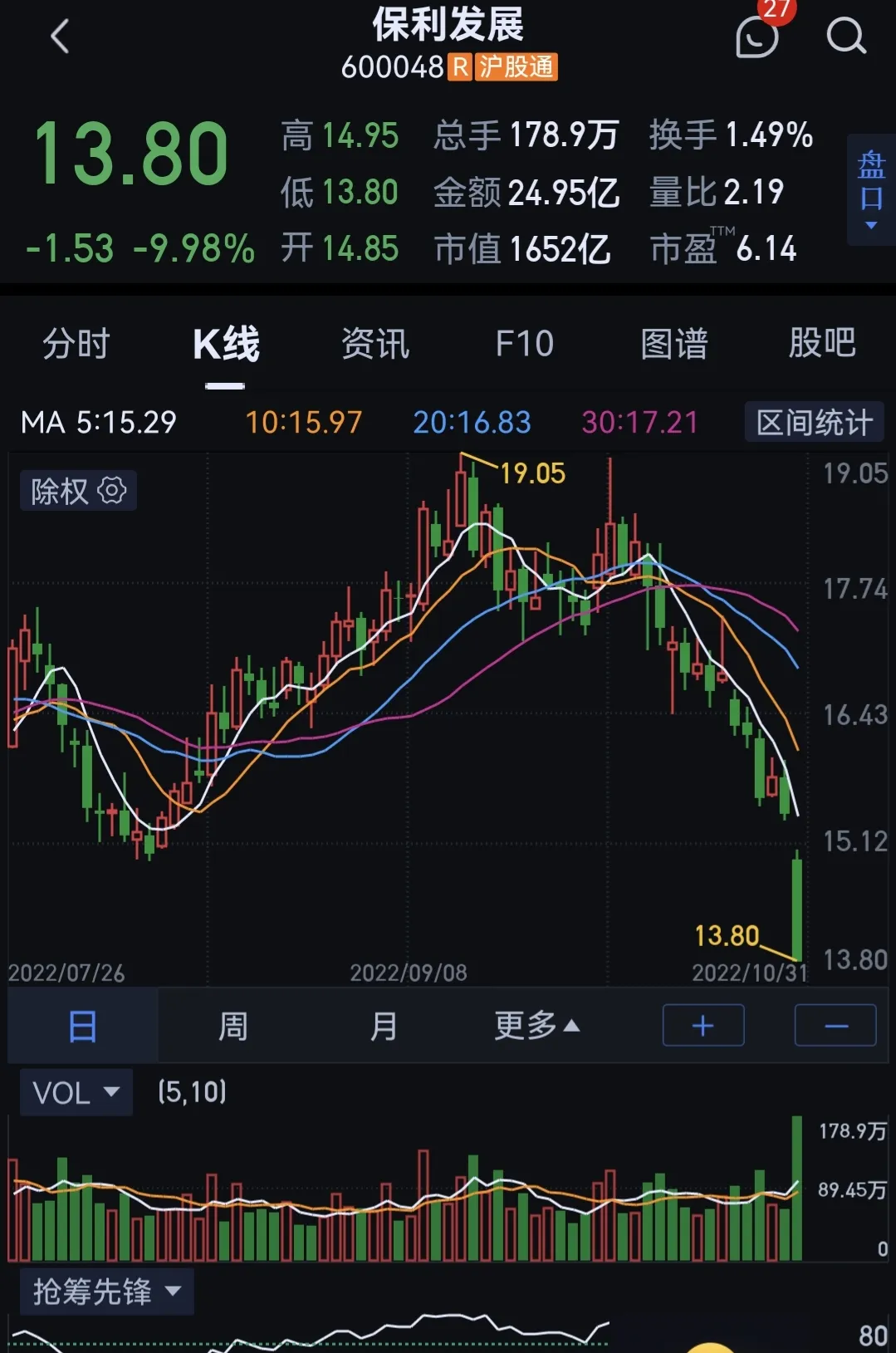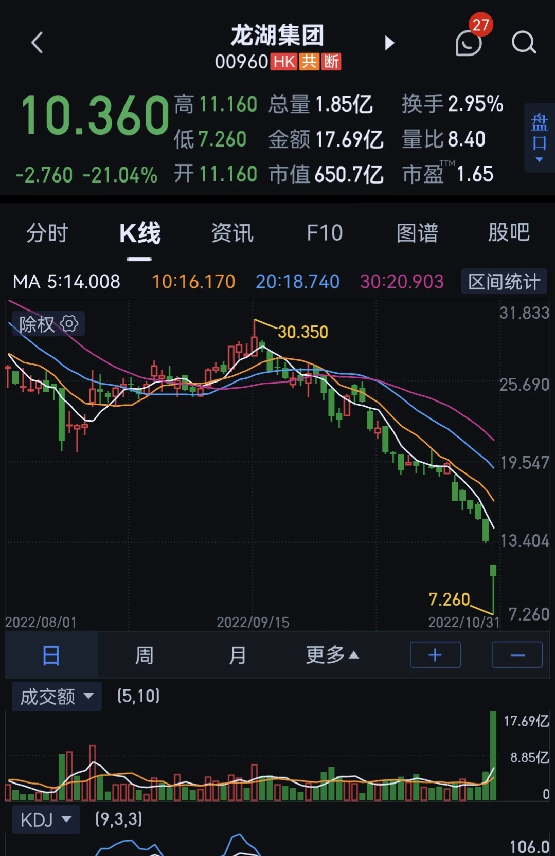 地产崩了,千亿市值的保利发展(600048)跌停,万科也没好到哪去,连续下跌后,今日再次大跌5.72%,更有港股龙湖集团,当日最大跌幅达44%,地产股可谓哀鸿遍野,投资者真的是上天无路,哭地无门。