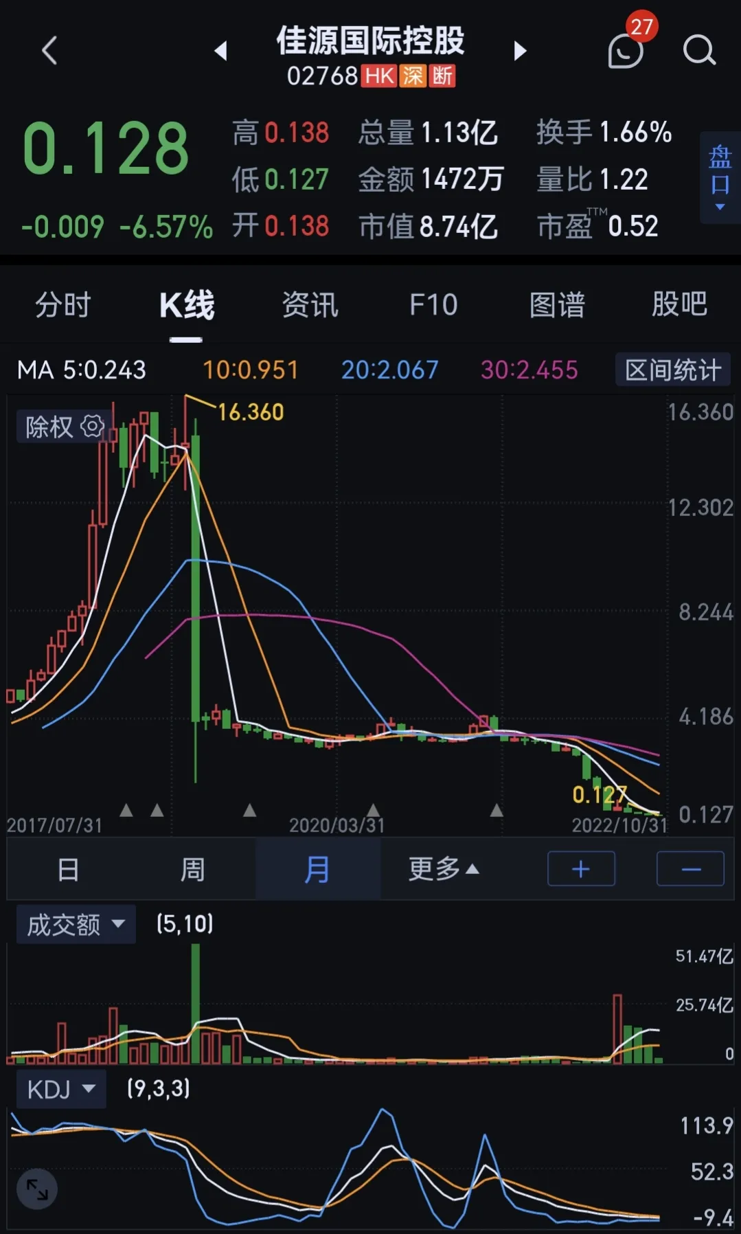 3,对于香港上市的内房股,很多都是100强房企,应该说后市机会明显大于风险。很多内房股,每股净资产还有好几元钱,资产总额好几千亿,受债务违约影响,股价却只有几毛,甚至几分,市值不足10亿,这要在往年,每年的分红都比市值高,只要有耐心等一等、挺一挺,过了这个寒冬,估值修复是水到渠成的事。