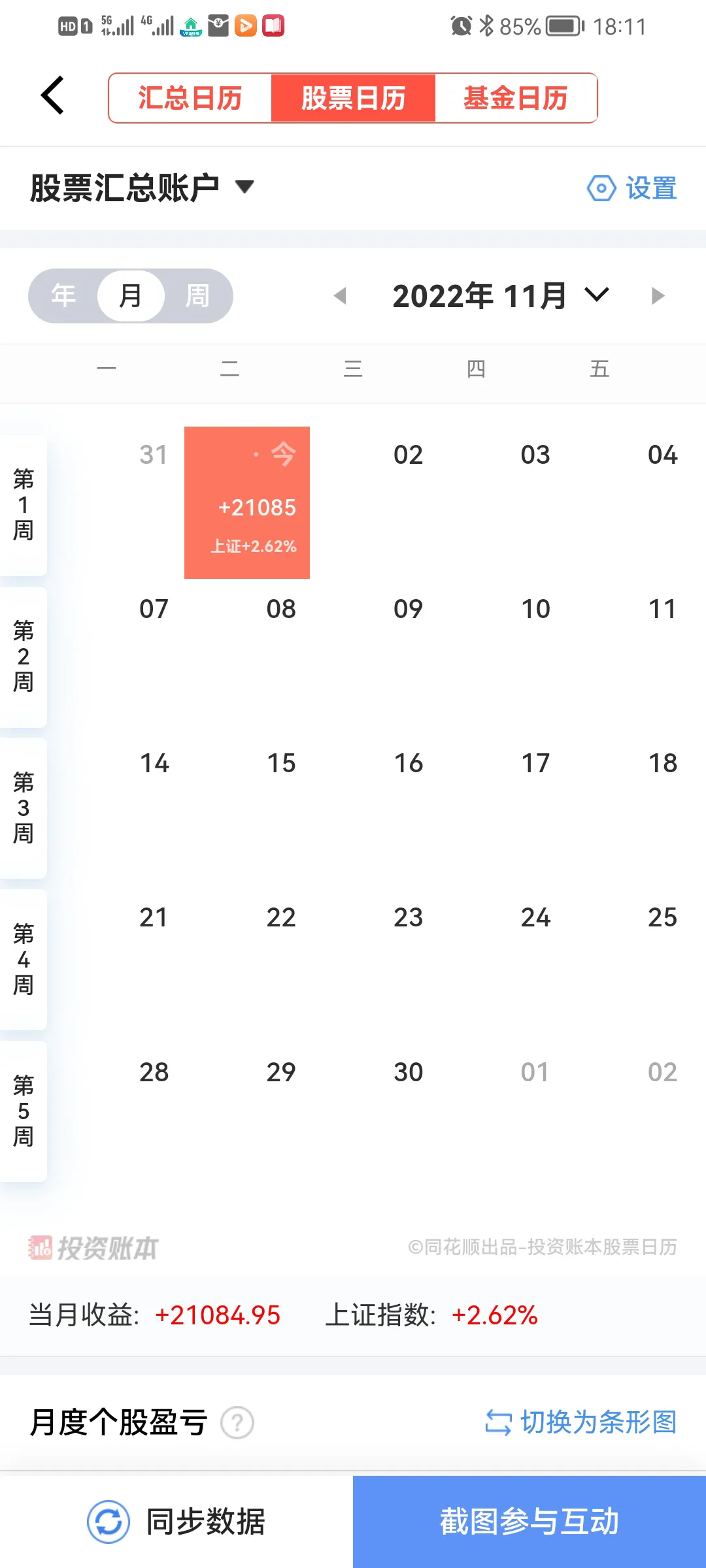 2022年11月1日,星期二,今日沪深股市早盘双双高开,随后展开积极上攻,早盘发起两波上涨行情,上证综指第一波从2899涨到2915,随后回撤不破开盘价便展开第二波上涨,最高涨到2946再次回撤,这次回撤幅度很大,最低打到第一波上涨最高点附近,午盘报收于次低点2918,下午续盘后股指在低位震荡半小时后一路攀升,尾盘报收于最高点2969,截至收盘,上证综指上涨2.62%,创业板指上涨3.2%,由于今日是11月第一个交易日,之前4个月大盘连续下跌,昨日三季报业绩披露完毕也意味着当前沪深股市最大风险全部释放,尽管还有11月2日美联储加息议程尚未尘埃落定,但市场走势已充分反映这一利空,今日果然在核心资产超跌反弹的带动下指数大幅上涨,个股普涨,喜迎11月开门红。今日实盘积极展开操作,通过调仓换股,共获利2万余元。