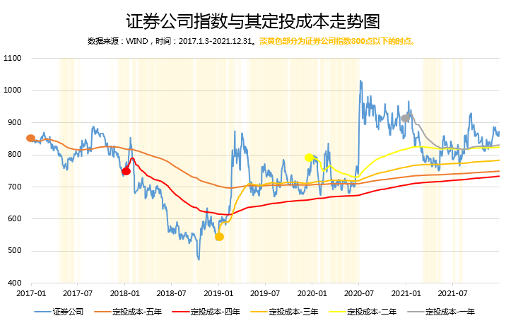 注:定投成本=以证券公司指数的每日收盘价的调和平均数作为定投成本(日定投)。