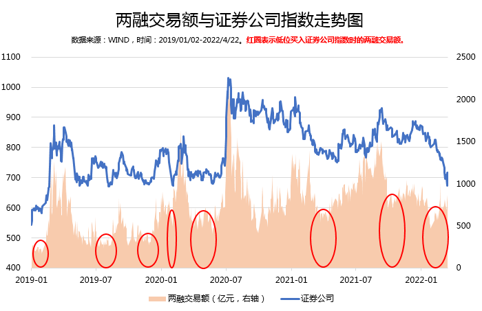 而刻画A股市场热度的常用指标包括全市场成交额、换手率和融资融券交易额等等,大家可以发现从以往数据来看,每当市场换手率和两融交易额较低的时候,证券板块指数往往为阶段性低点。所以,当市场日均换手率和两融交易额达到较低水平的时候,或许正是我们布局券商板块的不错时机。