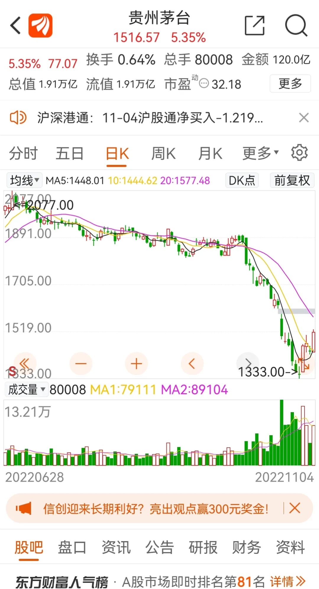 第四,能否达到3400点,观察贵州茅台。这是手握资金最有说话权力的机构们的大本营。10月份的快速下跌,一些机构跑了,一些机构被埋在里边。被埋的机构肯定要组织自救,否则退不出来。机构退不出,要想在新赛道发动行情,比较困难。要知道,行情是由资金推动的。增量资金不进场,就只能靠存量资金来回折腾。