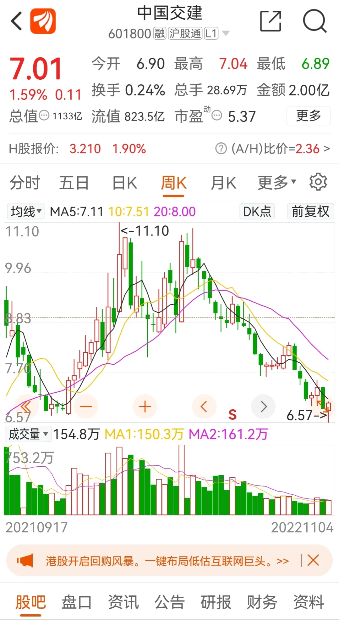 笼罩在大国重器、基建狂魔光环之下的基建类央企股票的股价,如中建、中铁、中交建、中铁建,逐级溃退。其实,从财务指标上,中交建等公司并不差,其所以股价下跌,说明人们对他们的预期比现在还要悲观。如果这种悲观情绪可控,基建类央企股就不能现在这样逐级下跌。