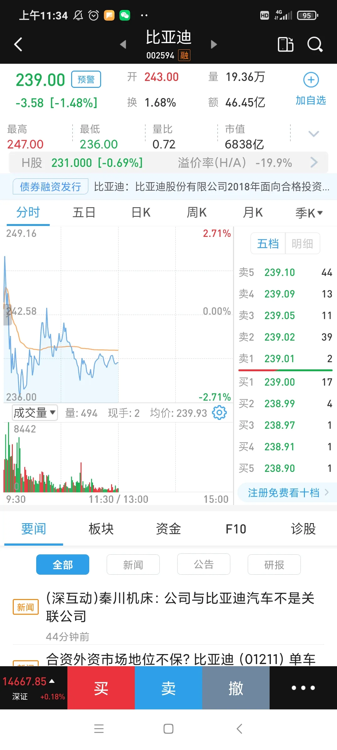 未来十年比亚迪股价的成长空间到239乘以5.64等于1347.96元,