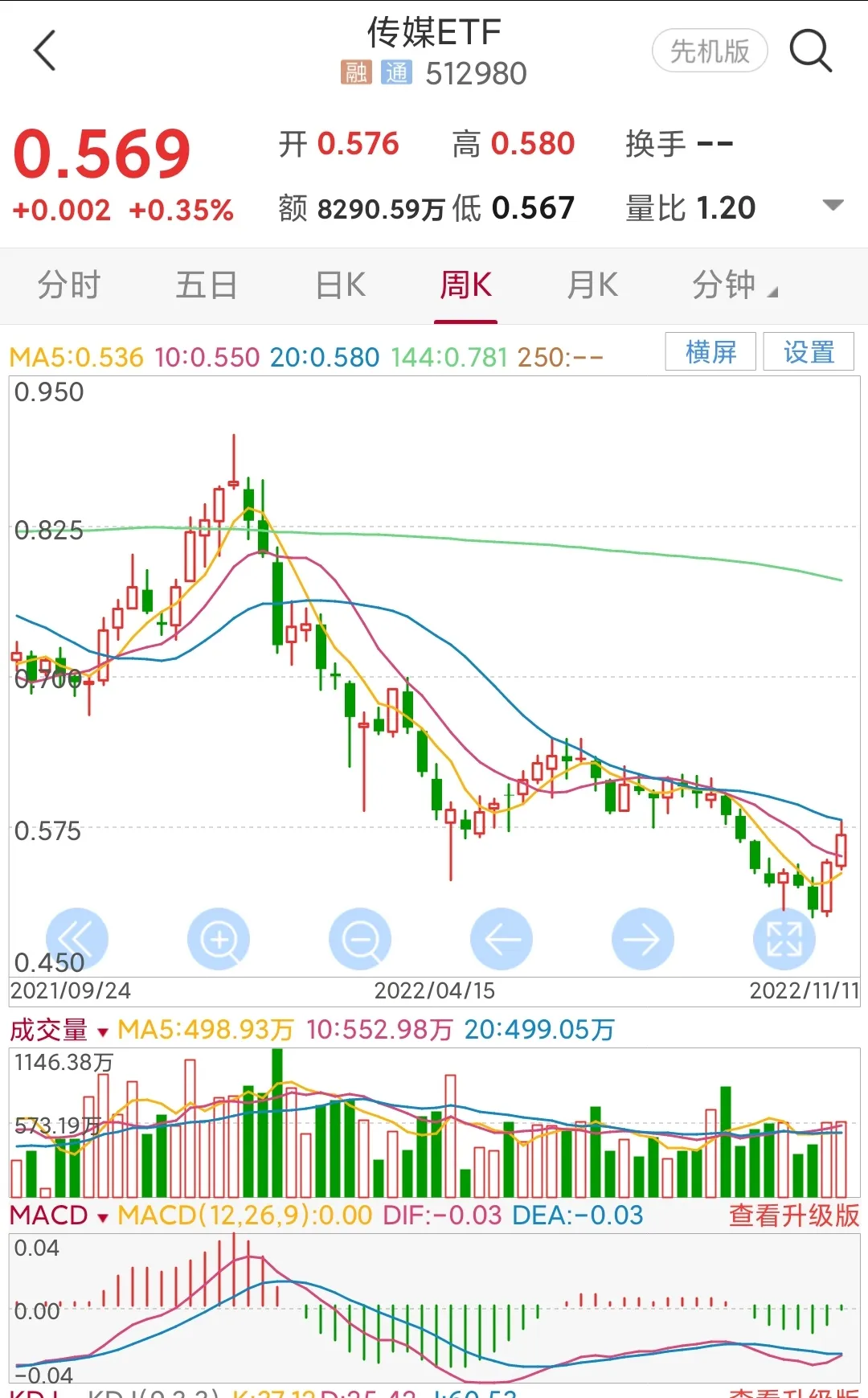 2.传媒etf,日线周期上涨趋势初步形成,建仓区0.545-0.555元,止损点0.5,目标0.64元左右,涨幅12%。