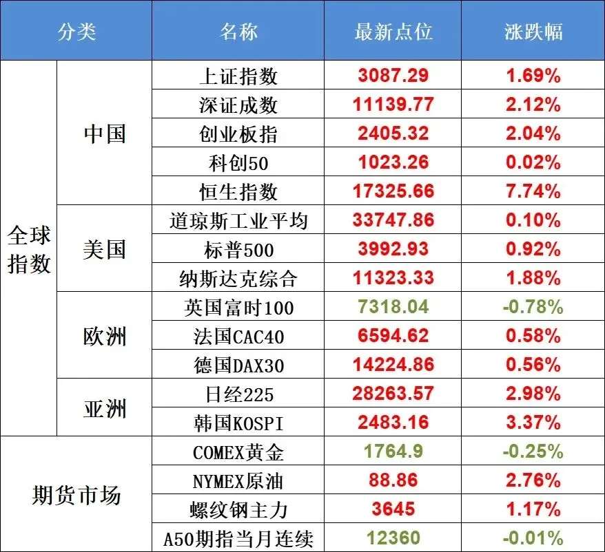 欧股收盘多数上涨,亚太主要股指全线收高。