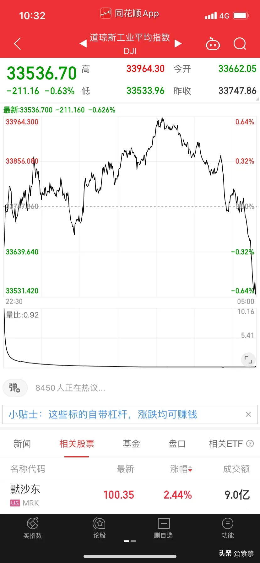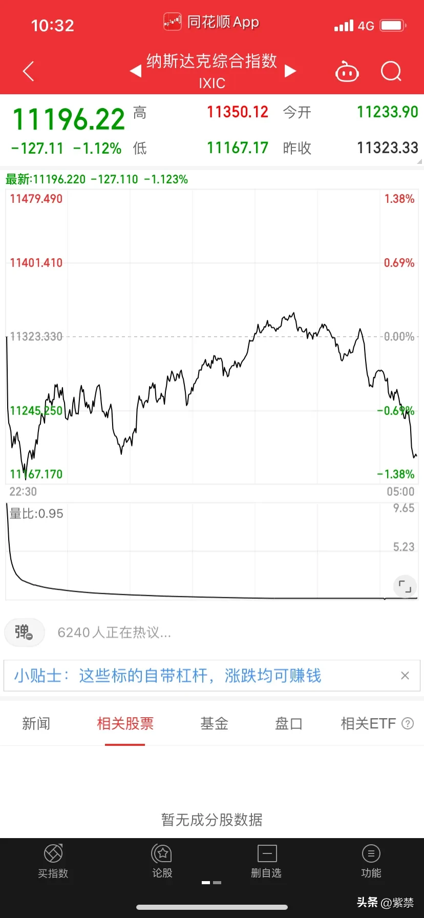 【尾盘跳水!美国股市冲高回落,纳斯达克勉强收在11000点上方,道琼斯指数接近压力区,美联储政策阴晴不定。】