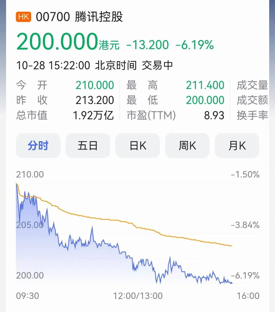 之前腾讯股票跌破200的时候,我觉得是个不错的低位,可以入场了。