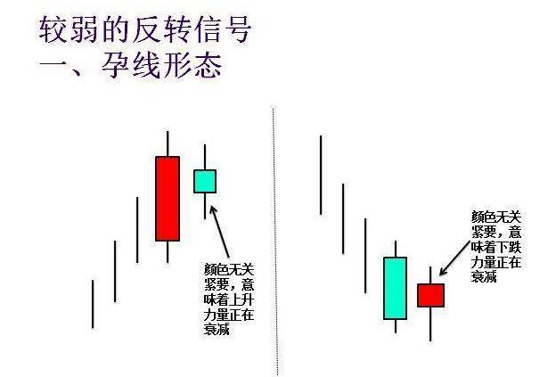 从图形上看,后一根K线像是长K线怀中的胎儿,因此,被形象地称为“孕线”。孕线孕育着希望,趋势随时都可能会反转向上。