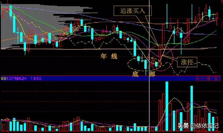 四,牛熊不败,个股依托底部形态,可以是V底,W底,圆弧底,向上攻击年线,若涨停突破,这个时候可以大胆跟进,