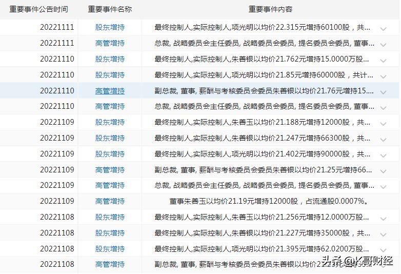 最终控制人,实际控制人,项光明以均价21.402元增持90000股,共计193.49万元,占流通股0.0053%。