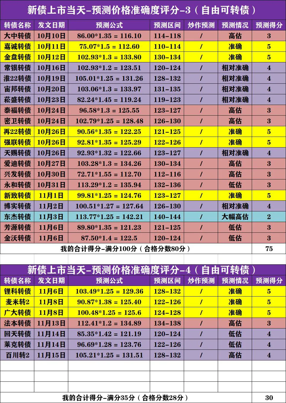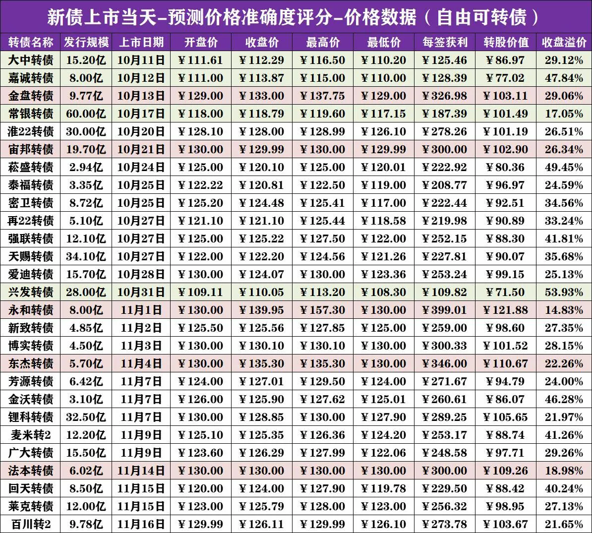 预测准确度评价权重:最高权重为转债每签获利,第二权重为转债最高价与转债收盘价,最低权重为转债的开盘价与最低价。