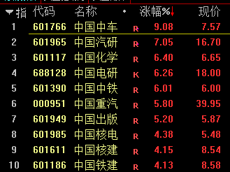 危难之际,“中字头”再度挺身而出引领市场人气!中国中车、中国化学、中国汽研、中国电研、中国重汽、中国中铁各有精彩表现。