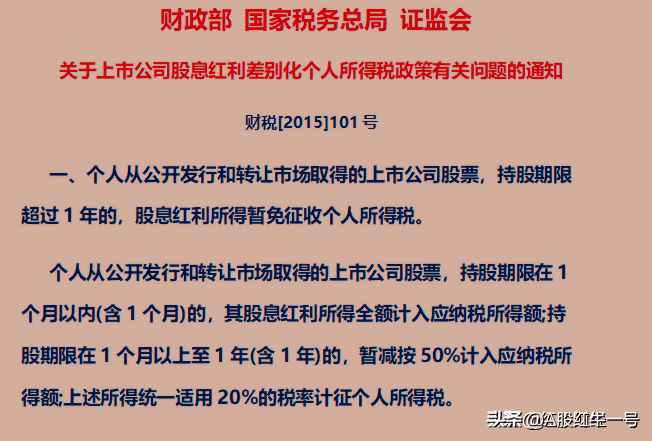 二、个人投资者在分得股票分红时,需根据持有股票的时间进行个人所得税的代扣代缴。