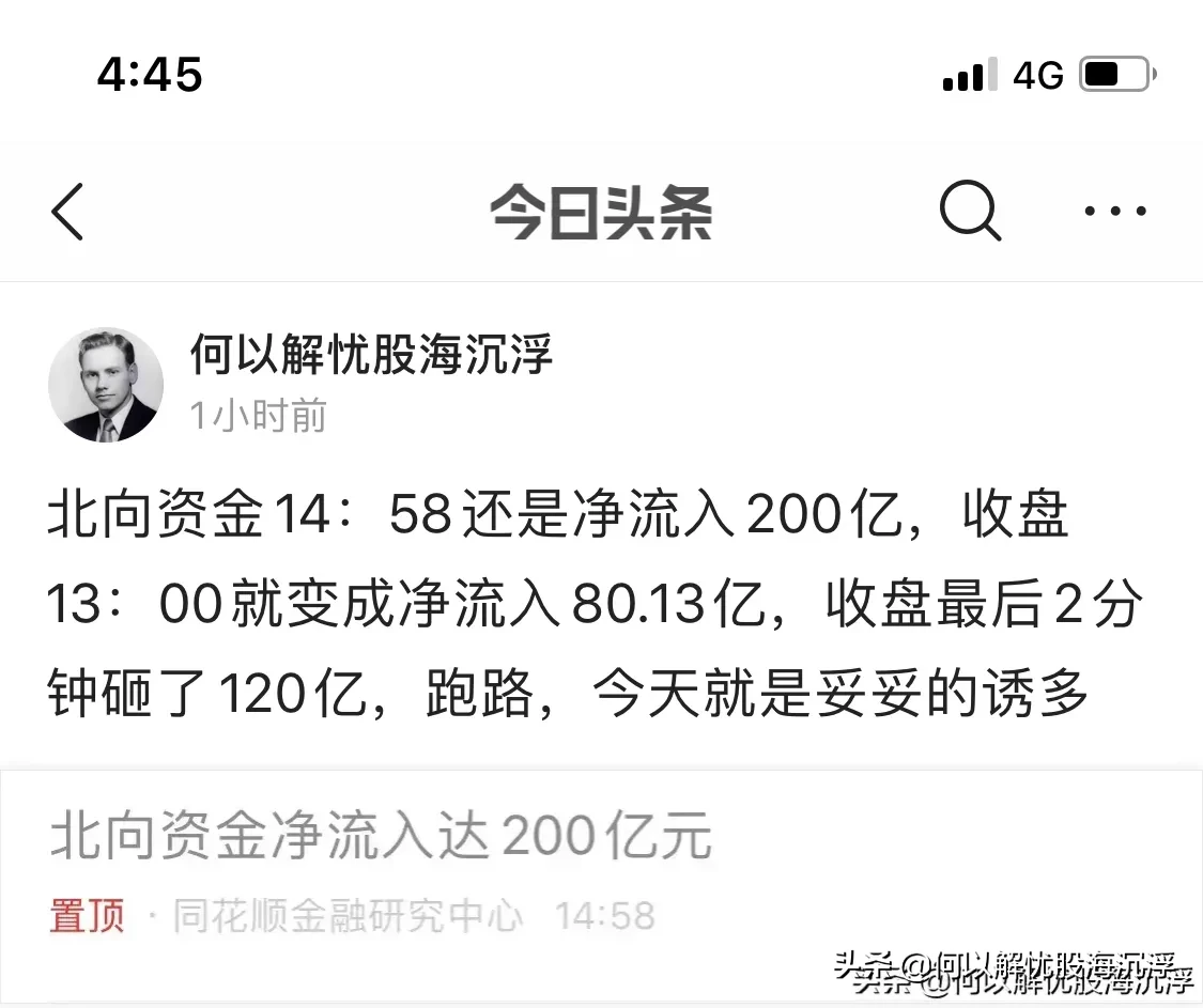 今日上午冲进去的人收盘都吃了碗大面,上周分析过,上周五银行上涨,只是自己的独立行情,第二天不是低开低走就是冲高回落,今天放巨量冲高回落,今天的量快达到7月7号高点的量了,保险和证券今日都是倍量上涨,但都没有达到7月2日发动进攻的量,所以大涨的行情暂时不存在,我没有买金融股票也是因为不确定因素太多,今日银行这根长上影是一剑封喉还是仙人指路,目前来看前者偏多一些,因为目前大盘处在重要的颈位线压力位,多空分歧严重,还有就是周线背离严重,指数依旧需要时间进行修复,今日北向资金最多的时候236亿,收盘砸了156亿,今日是上周以来首次深股通净流入超过沪股通,而且目前创业板有企稳回升迹象,所以建议大家可以关注一下创业板