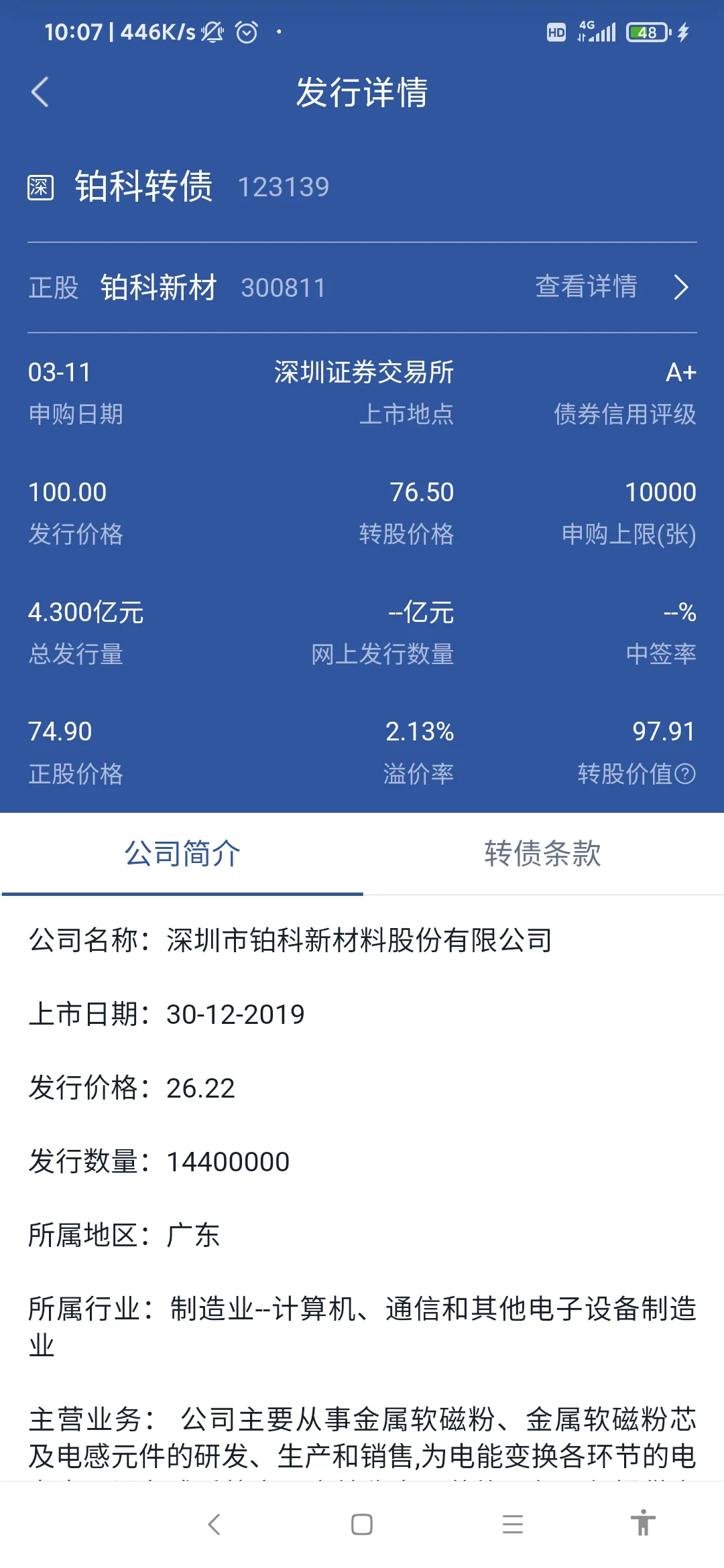 123139#铂科转债# ,申购代码370811,转股价值97,上市可能121.25- 130.95左右,债券都可以申购。