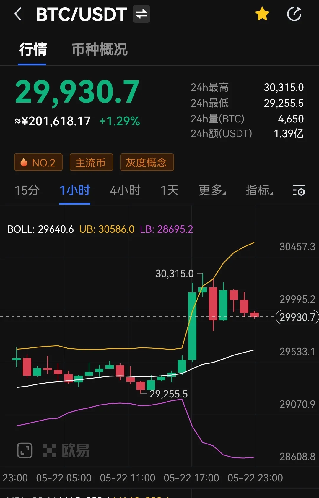不过,这一价格并未维持多久,在6个小时以后,价格再度回到3万美元以下!截止写文价格为29939美元。