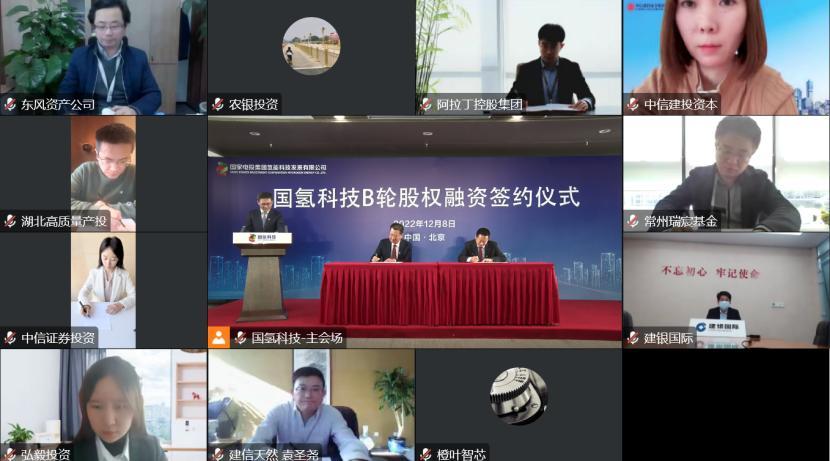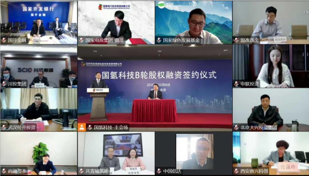 2022年12月8日,国家电投集团氢能科技发展有限公司(简称“国氢科技”)B轮融资签约仪式在京以“现场+视频”的方式圆满举行,全体股东方同国氢科技共同签署了增资协议。本次融资引入了国有大型投资基金和金融机构、氢能产业链合作伙伴和具有战略协同能力的民营资本投资者,融资金额45亿元,是国内氢能行业迄今为止单轮融资规模最大的股权融资。国氢科技B轮融资投后估值达130亿元,成为国家电投集团培育的第一家独角兽企业,也是氢能行业目前估值最高的独角兽企业。