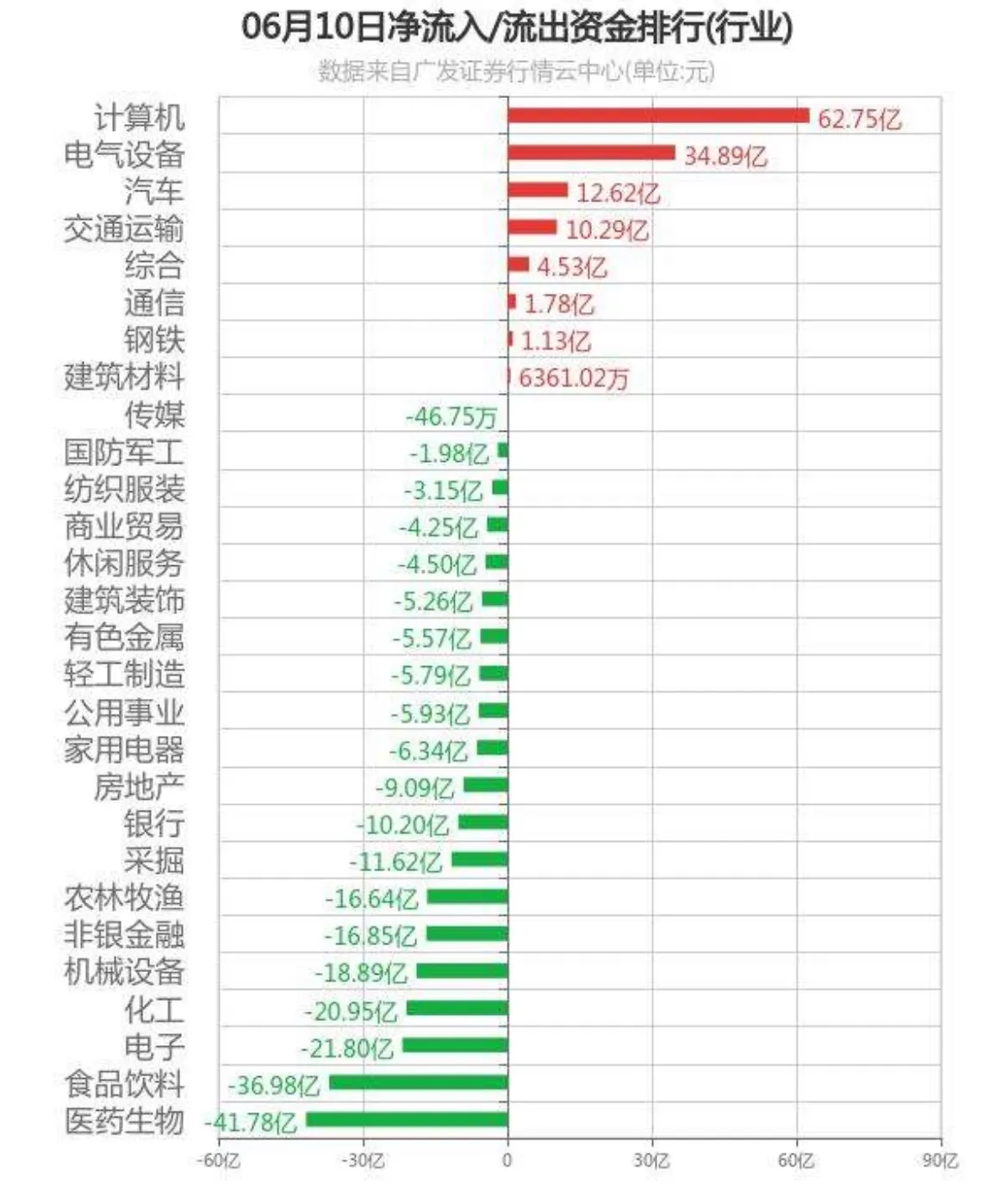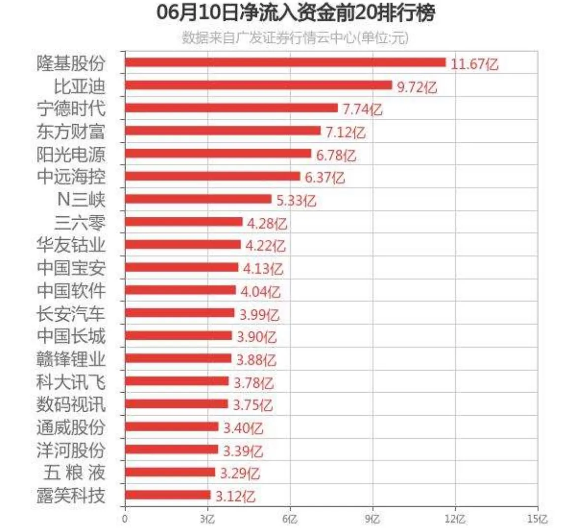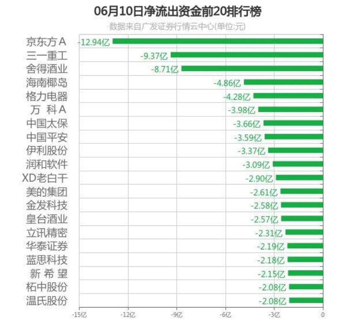 6月10日,A股证券股市主力资金流入、流出数据,股民朋友留意!
