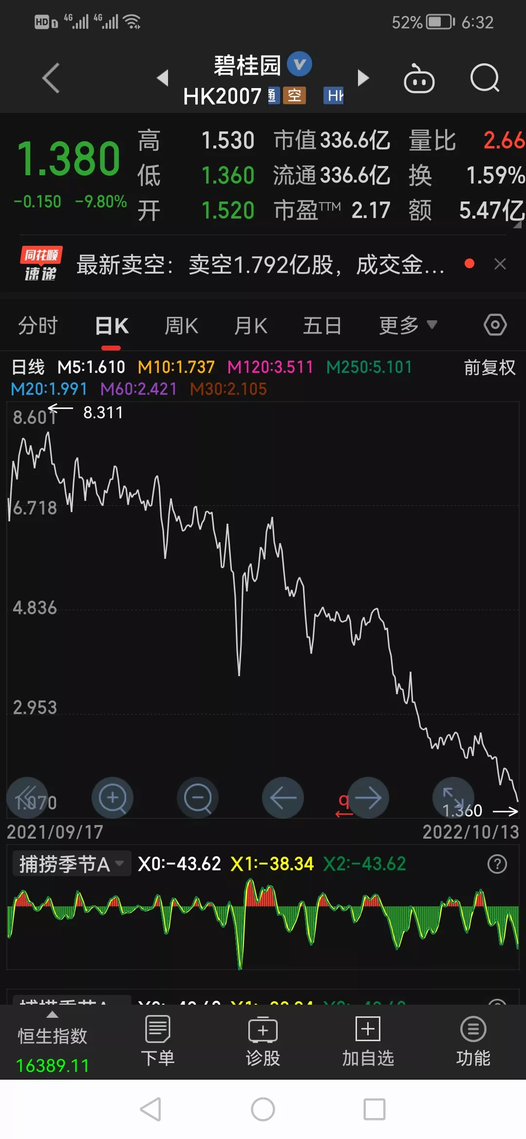 碧桂园穷途末路,股价已经跌至1.38元港币,创出历史新低。市值只有区区336亿,而4年前股价最高19.16元,总市值接近5000亿,短短4年股价跌幅超过百分之90!