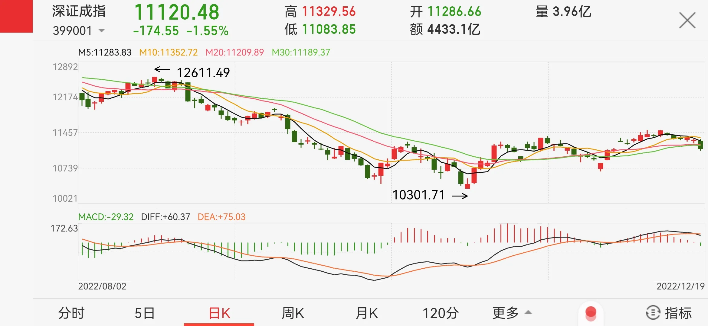 1.个股macd绿柱变长,股价继续在5日均线之下,开盘开在20线之下,并深度下行。
