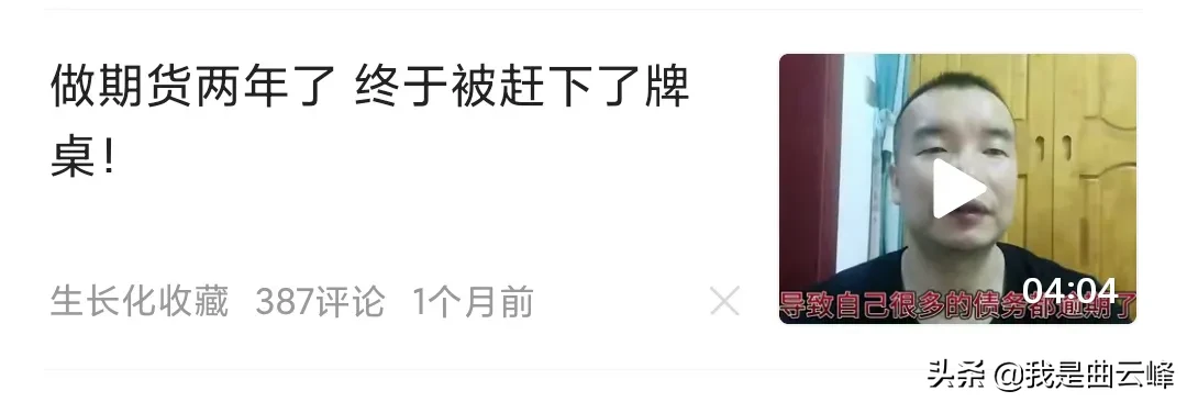 最近网上不少人嗮帖,期货赔光,股票爆仓,小鹿痛哭,年年妈悲伤……