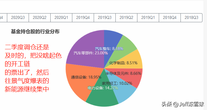 但是一季度过去,发现好像没有什么起色,他就果断撤了:减少了装修类的配置,投入更多的到新能源领域(当然新能源一直是主要持仓),这一波调整还是可以的,这一波反弹顺利迟吃到,季度胜率做的也不错。