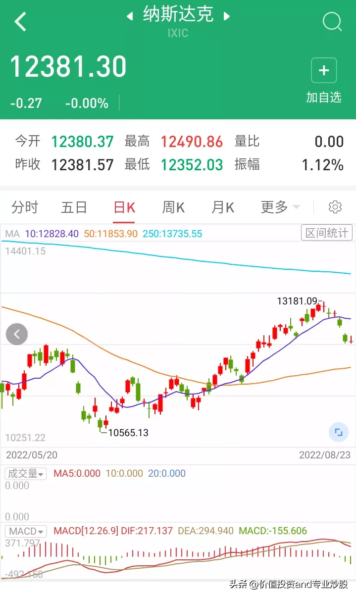 周二夜盘,美股三大指数纳斯达克、标普500、道琼斯工业分别微跌0,0.2%,0.5%,三大指数总体震荡,具体走势低开上涨后慢慢下跌。从日k走势图可以看出,现在美股在下跌趋势中,两天大跌后震荡休息一下,该卖了。纳斯达克和标普底部都上涨20%以上了。