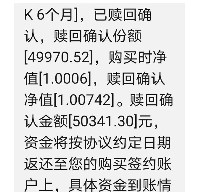 今早收到银行短信,忐忑地打开一看,松了一口气。还好,5万六个月的理财得了341的利息。比R1还少,但总算保住本金了。这一波没亏,感觉是银行在力挽狂澜,在竭力挽回名声。但是有的东西,我们的底线划得很死,一旦破了,就会被认为不值得,因为我们放在银行而非基金或股票里,就是要分散风险,就是追求稳收。连这一点都做不到,我们还执着什么呢?