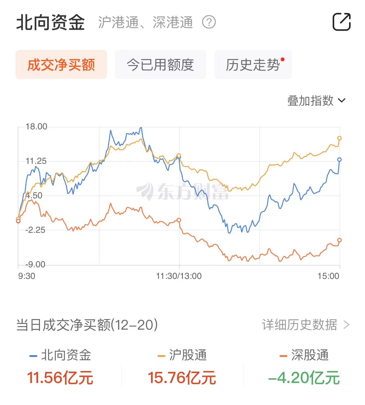 2、北向资金净流入11.56亿,今天出现了小幅流入,说明外资的买买买的步伐还在继续。