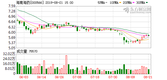 1.2019年10月10日,海南海药A股开盘6.41元,全日小跌0.94%,股价收报6.33元