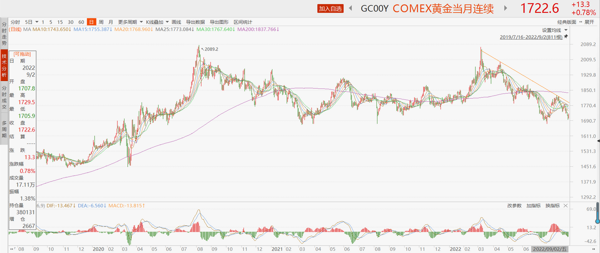 1.黄金又回到了宽幅震荡区间的下沿,且到了布林带的下轨,这是不是值得做多的机会?当前MACD没有出现周线级别的底背离,还是死叉